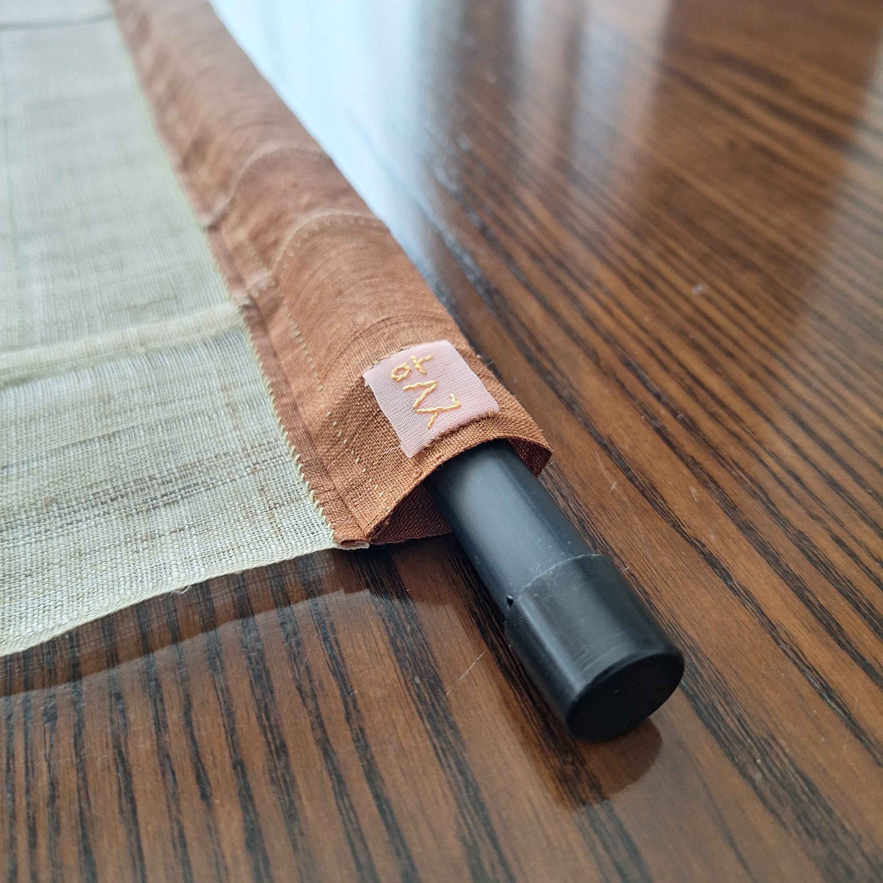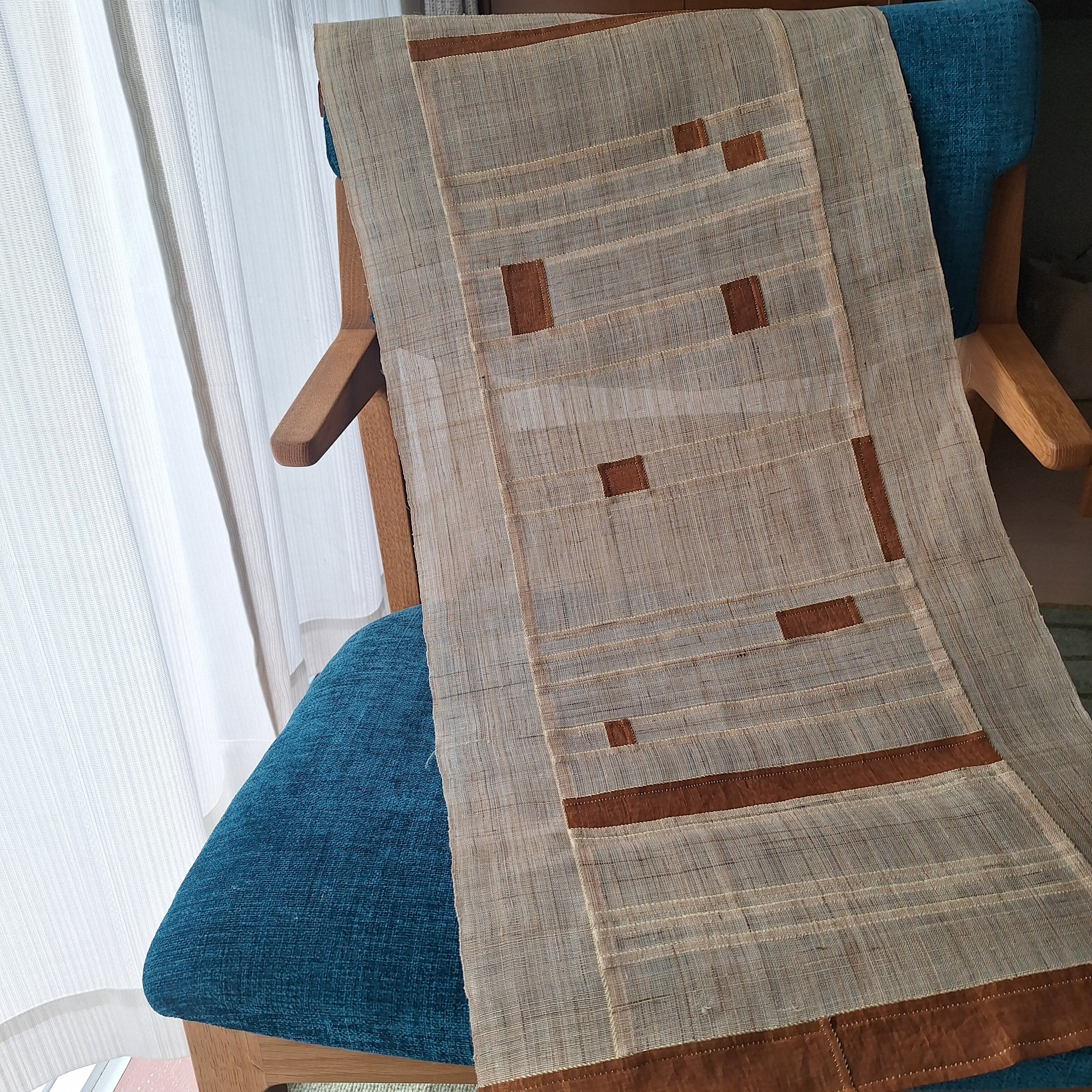 端布を繋いでつくる韓国伝統のパッチワーク「チョガッポ」の技法で、韓国麻(モシ)と近江麻を一針一針手縫いで仕上げた本格的ポジャギです。